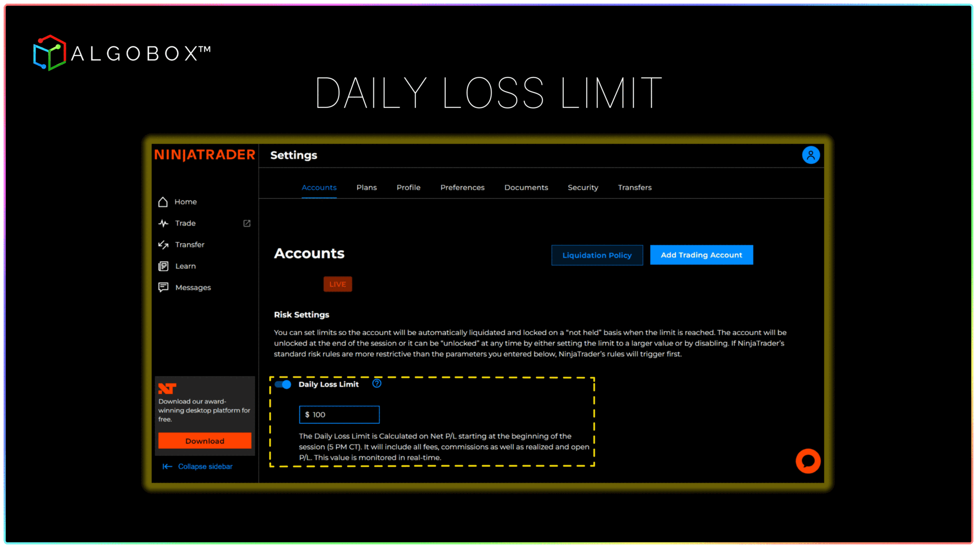 ## Enabling A Daily Loss Limit To Your Account