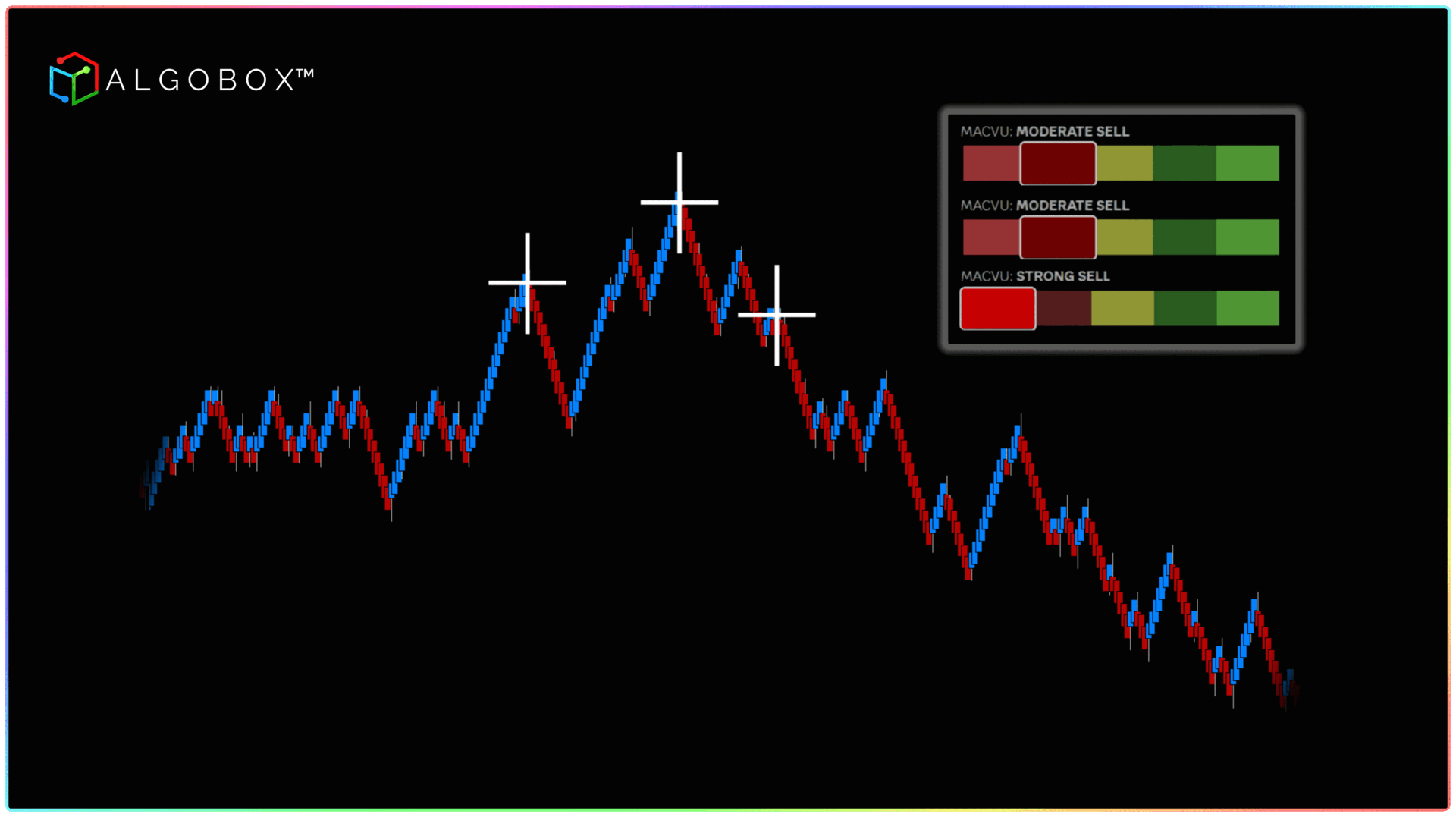 <figure><img src="https://3588932008-files.gitbook.io/~/files/v0/b/gitbook-x-prod.appspot.com/o/spaces%2FSmdQdlKTkpiw2LN0L1TV%2Fuploads%2FnE1EKYjKNA7YtObp2OW4%2F3%20kings%20sell%20.gif?alt=media&#x26;token=19e5602c-d42b-4257-bdf3-8f0769324ca2" alt=""><figcaption><p>Here are three consecutive FlowMaster™ Crosses plotted in alignment with the MACVU's Moderate and Strong Sell signals, suggesting a potential downward move.</p></figcaption></figure>