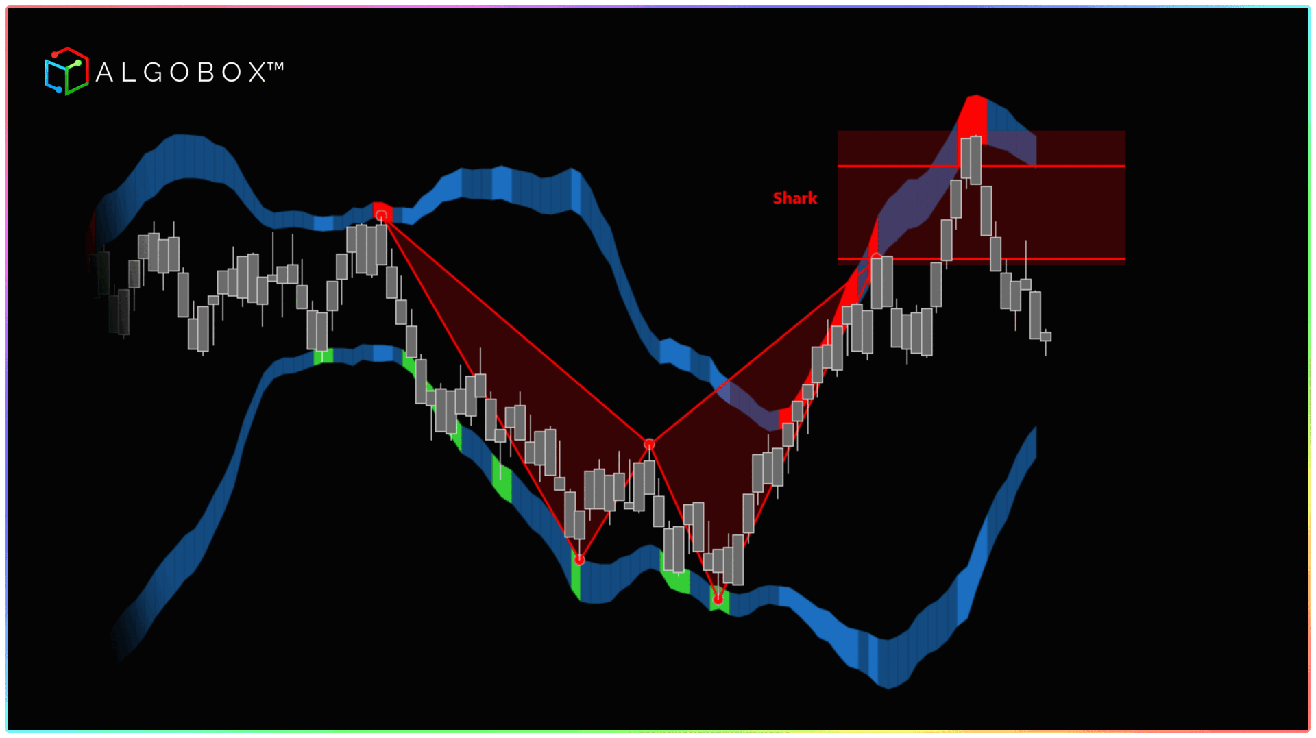 <figure><img src="https://3588932008-files.gitbook.io/~/files/v0/b/gitbook-x-prod.appspot.com/o/spaces%2FSmdQdlKTkpiw2LN0L1TV%2Fuploads%2FWysSreoWNI1YQyOTtDI0%2FBolinger%20Bands%20shark%20GIF%202.gif?alt=media&#x26;token=1e4a9a42-df2f-4093-9041-0d62b4de0c62" alt=""><figcaption><p>Another example of a red Shark Harmonic Pattern appearing at the touch of the upper Bollinger Bands could indicate a potential downward move, signaling a possible opportunity for short positions.</p></figcaption></figure>