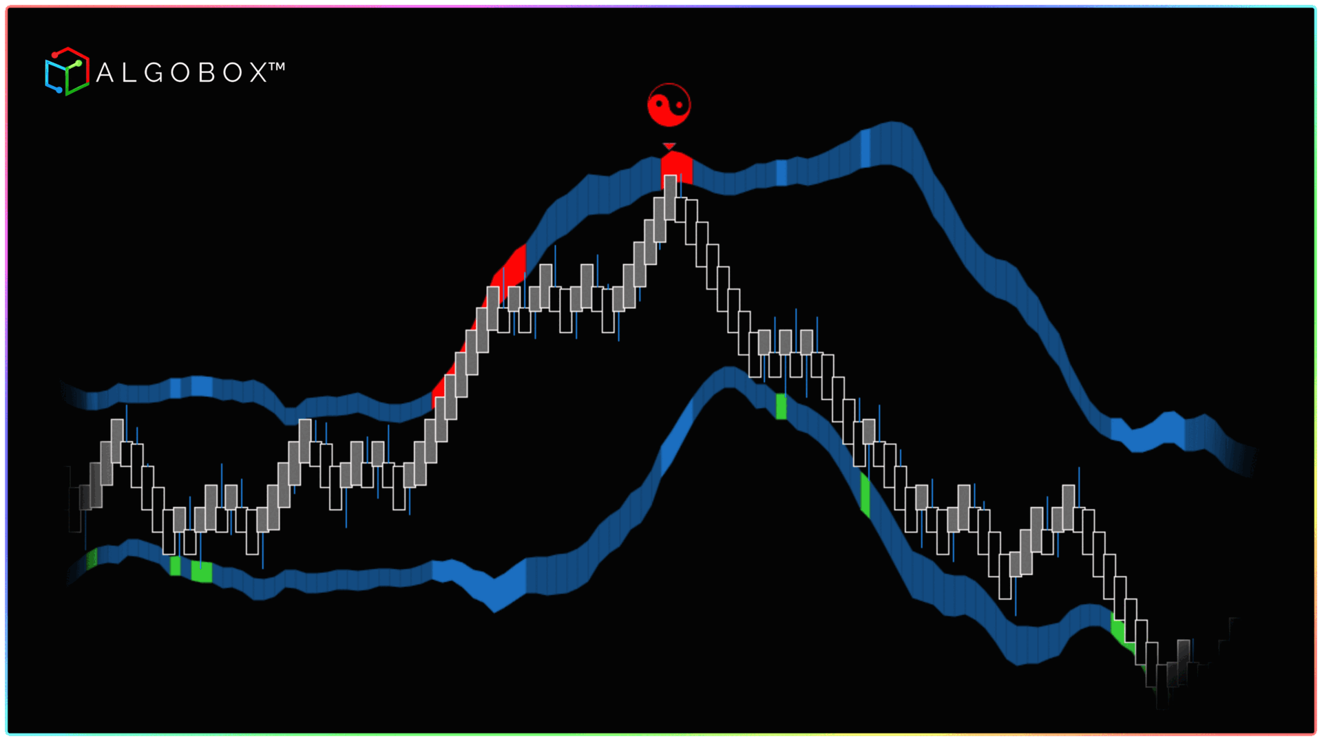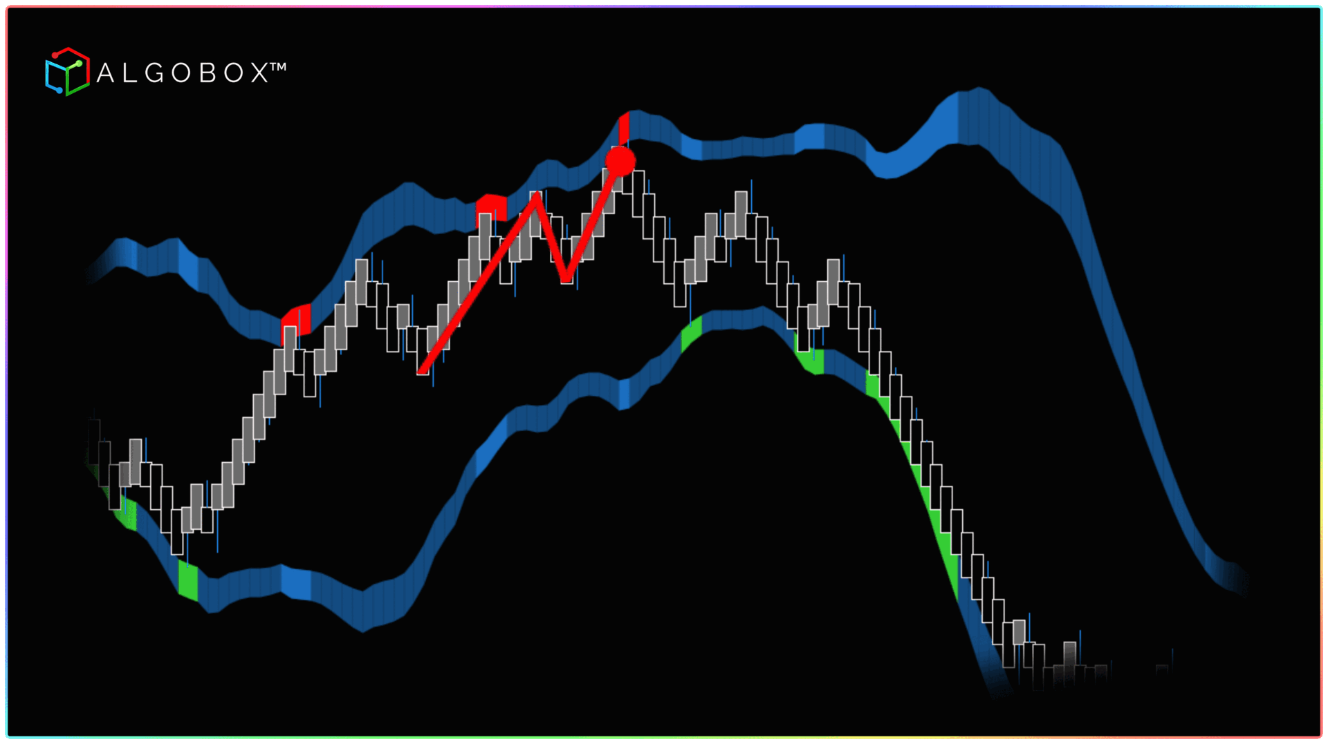 <figure><img src="https://3588932008-files.gitbook.io/~/files/v0/b/gitbook-x-prod.appspot.com/o/spaces%2FSmdQdlKTkpiw2LN0L1TV%2Fuploads%2FAhO7unpLg0BxmXYwy4k5%2FBolinger%20Bands%20GIF%204.gif?alt=media&#x26;token=423db7aa-d90b-4e57-b305-d96065a7a0e0" alt=""><figcaption><p>The AlgoBars touch the upper Double Bollinger Bands turning it red, then reverses sharply and moves lower.</p></figcaption></figure>